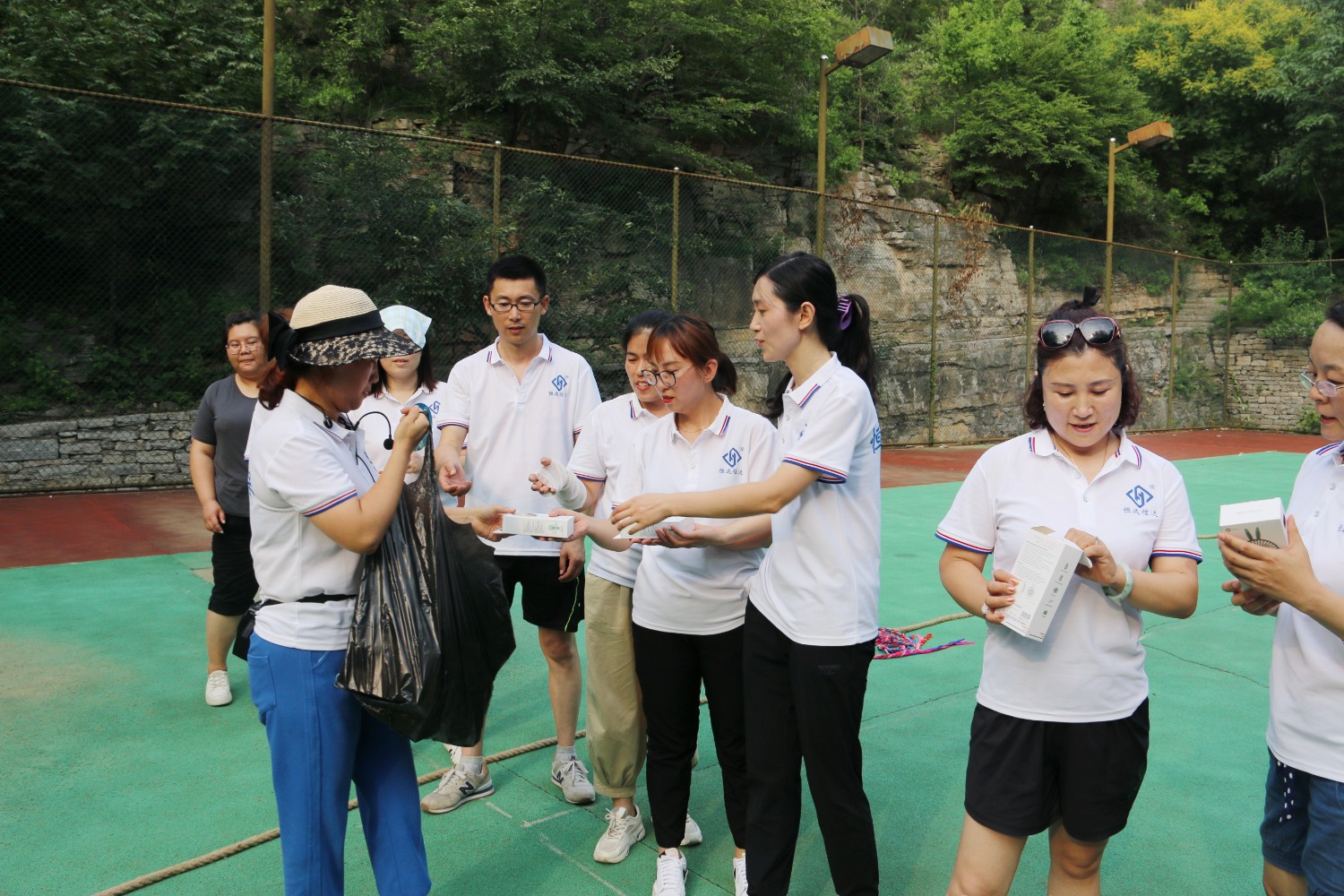 遠(yuǎn)離了城市的喧囂,暫別了緊張的工作節(jié)奏,將身心融入青山碧水,全體員工在譚溪山中棧道健步前行。上午以登山為主,其中穿插了團(tuán)隊(duì)小游? 戲,四支隊(duì)伍根據(jù)微信群的提示指令完成相應(yīng)的任務(wù)。登山過程中,團(tuán)隊(duì)內(nèi)部之間的溝通與協(xié)作,充分體現(xiàn)了團(tuán)結(jié)就是力量的精神。